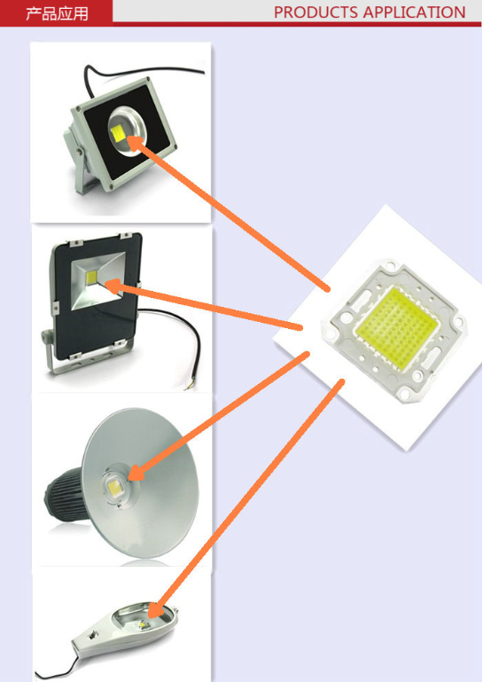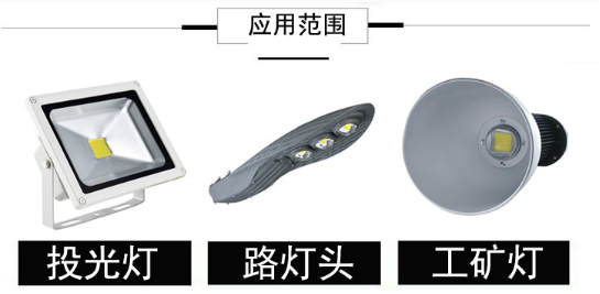 集成大功率LED主要用在泛光灯,投光灯,隧道灯, 路灯,工矿灯等产品上。