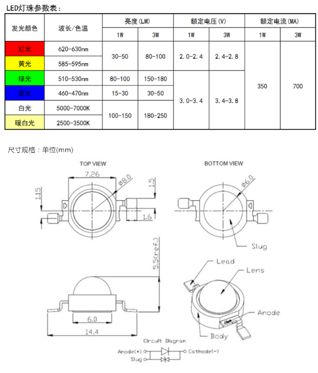因为大功率LED型号规格较多,所以,如果你需要更具体的LED灯珠参数,请咨询灯珠教授助服工程师。咨询QQ: 2881795059