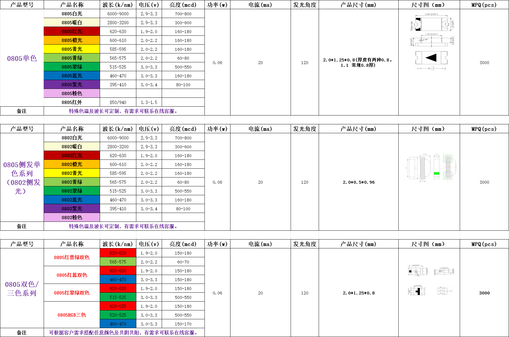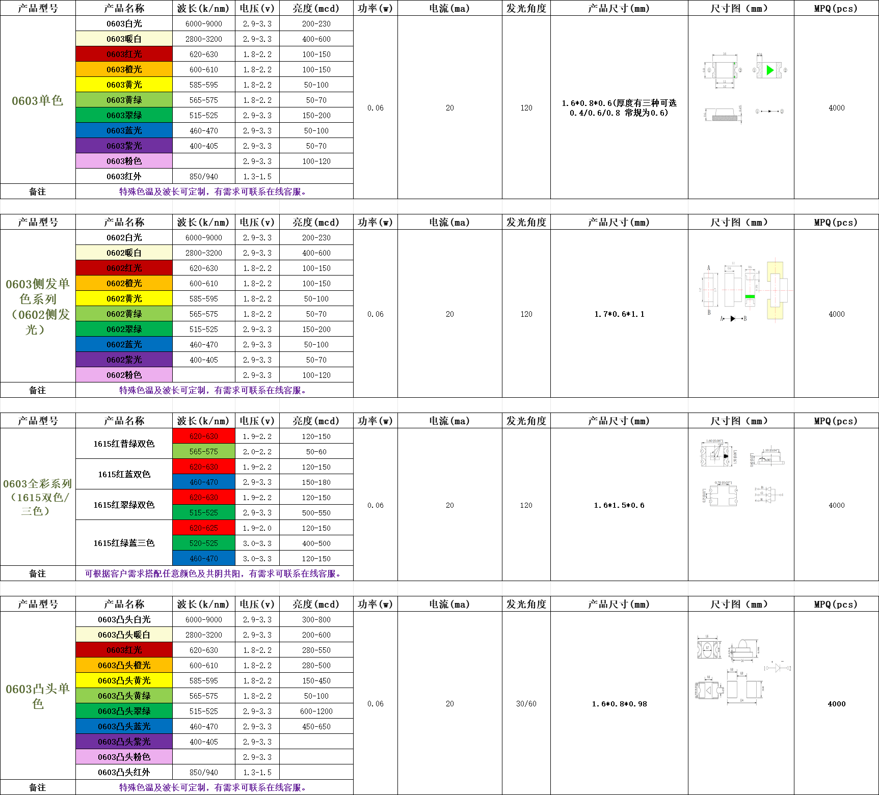 选型推荐: 0603灯珠_0603灯珠尺寸_0603贴片led参数,单色双色三色全彩规格书。