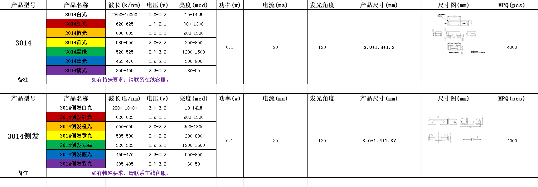 如果你需要更多的贴片LED灯珠型号,请直接联系我们。