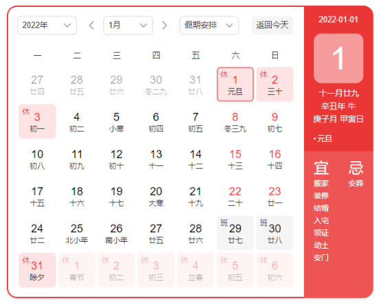我司元旦放假时间: 2022年1月1日-3日,共计放假3日。