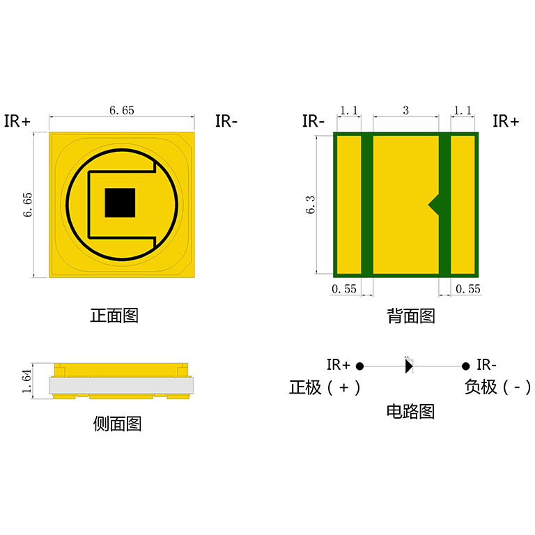 | 型号Part No. | 功率power(W) | 波长wavelength(nm) | 光功率optical power(W) | 电压VF(V) | 电流IF(mA) | 角度Angle(deg) |