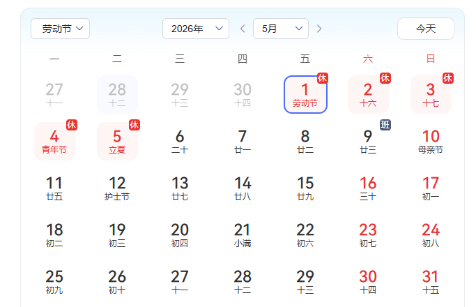 根据国务院节假日安排,结合公司经营实际,现将 2026 年劳动节放假事宜通知如下: