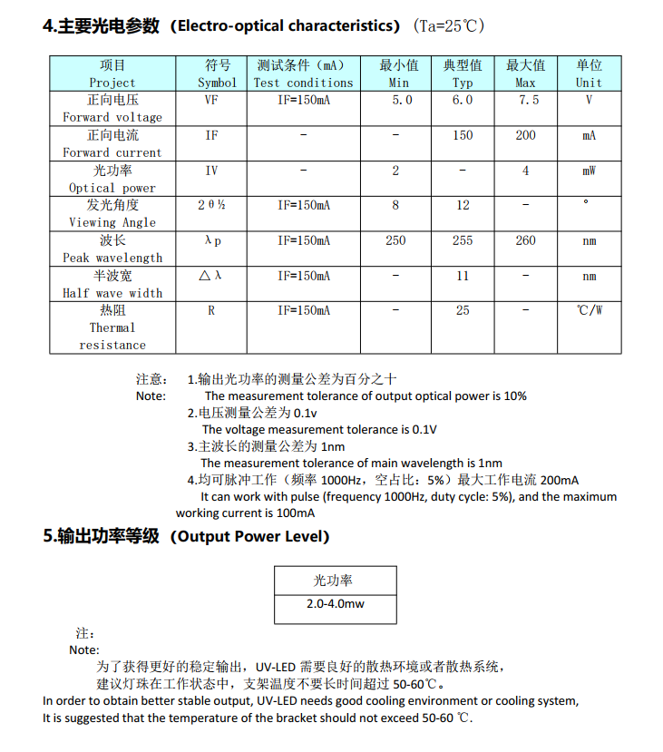 注:部分常规灯珠规格型号不同光功率可能不同,可以根据实际需求选择相应规格型号,详细规格书及样品参数
